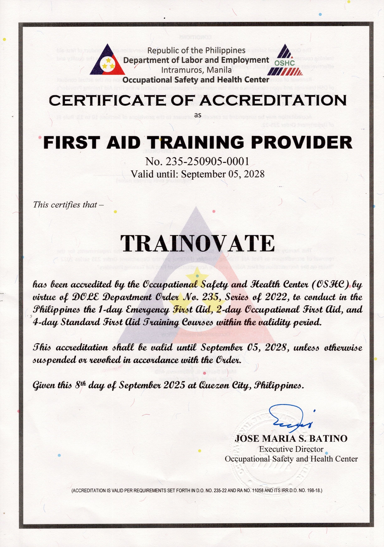 Our accreditations and certifications demonstrate the quality of our Philippine health and safety trainings. We provide